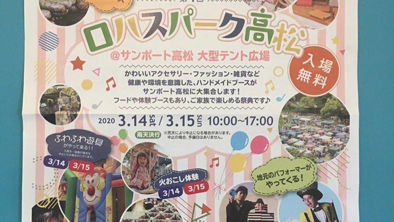 イベント出店情報です☆「ロハスパーク高松@サンポート高松大型テント広場」、出店します😄二日間開催で、haru soraは2日目の15日(日)のみの出店です。 美味しいものやステキなもの、ステージイベントや体験型イベントも … 続きを読む 【終了】「ロハスパーク高松@サンポート高松大型テント広場」に出店します